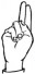 На ћирилици написано ВОЈНА ДЕДИНАЦ састоји се из 12 слова [?]. Исписано ћириличном једноручном азбуком за глувонеме: